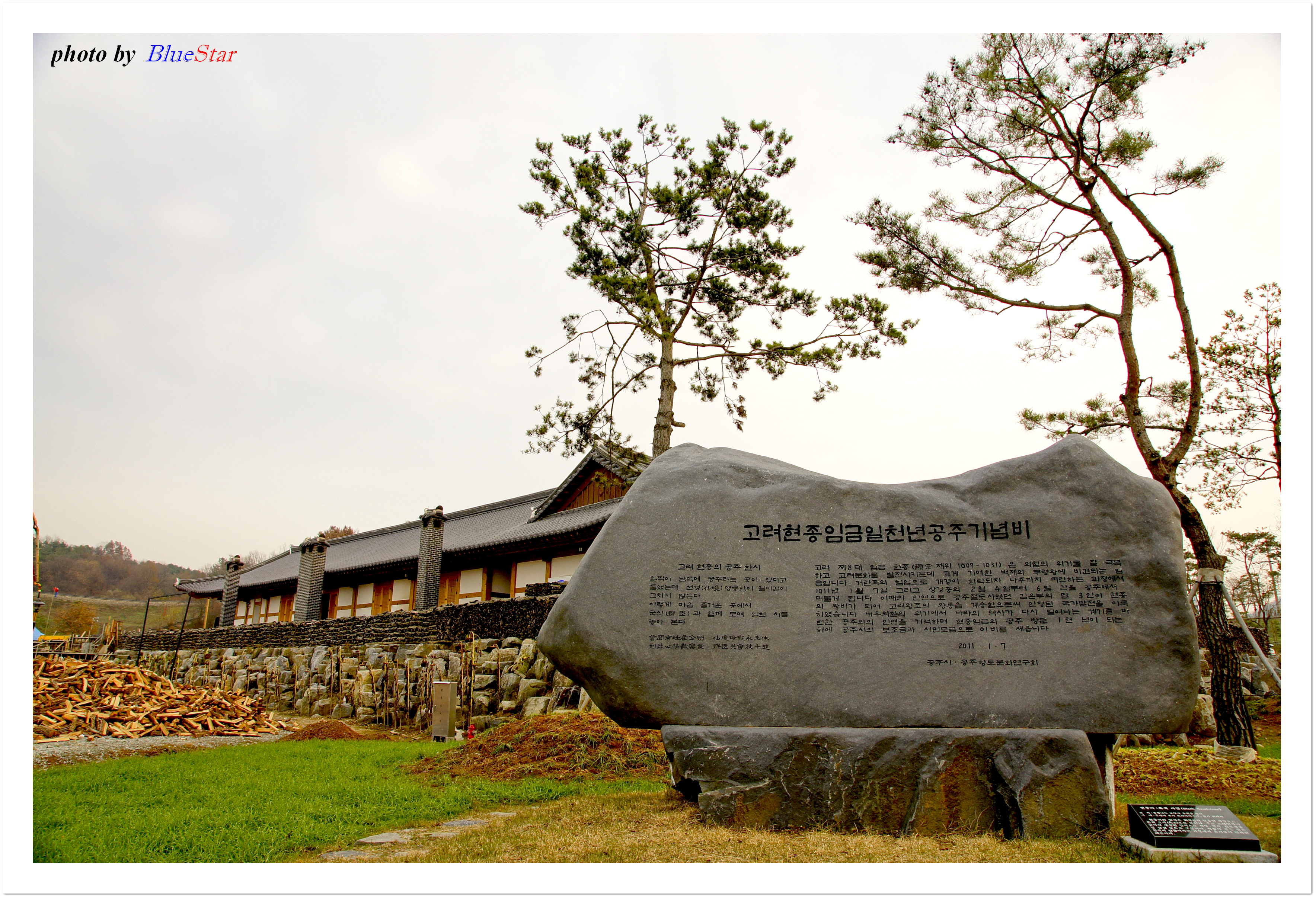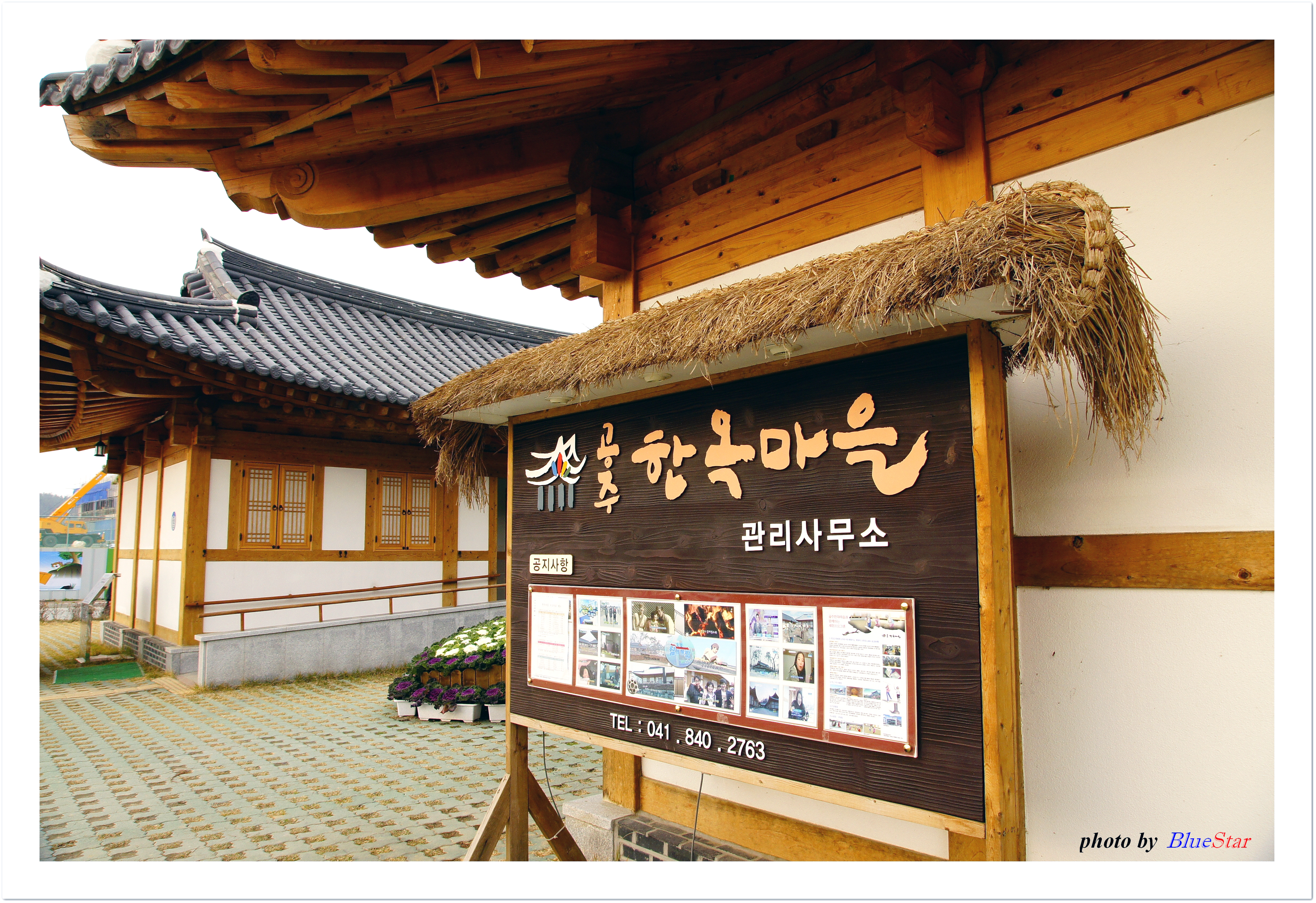 밤을 좋아하시는 어머니를 모시고 밤산지인 공주에 들렀다. 그리 넓지 않은 공주시내이건만 밤을 살 수 있는 곳은 몇군데로 한정되어 있어 물어물어 겨우 밤을 구입할 수 있었다. 기왕에 온 공주에서 전문 밤음식점에 들러봐야 구색이 맞지 않겠나 싶어 밤전문음식점으로 유명한 농가식당에 들렀다. 이 식당은 공산성 맞은편에 위치해 있다. 음식값도 다른 식당과 다를 바 없지만 소문난 집 답게 밤을 갈아만든 부침개와 밤으로 만든 묵국이 맛있고 색달랐다. 식사 후에 아내는 뉴스에서 봤다며 공주한옥마을에 한번 가보잔다. 무령왕릉 뒷편, 공주박물관 앞에 위치한 이 곳 한옥마을은 공주시의 문화관광사업의 일환으로 지난해 세계대백제전에 맞추어 약3만여평의 부지위에 조성된 곳으로 현재도 계속 공사 중이다.