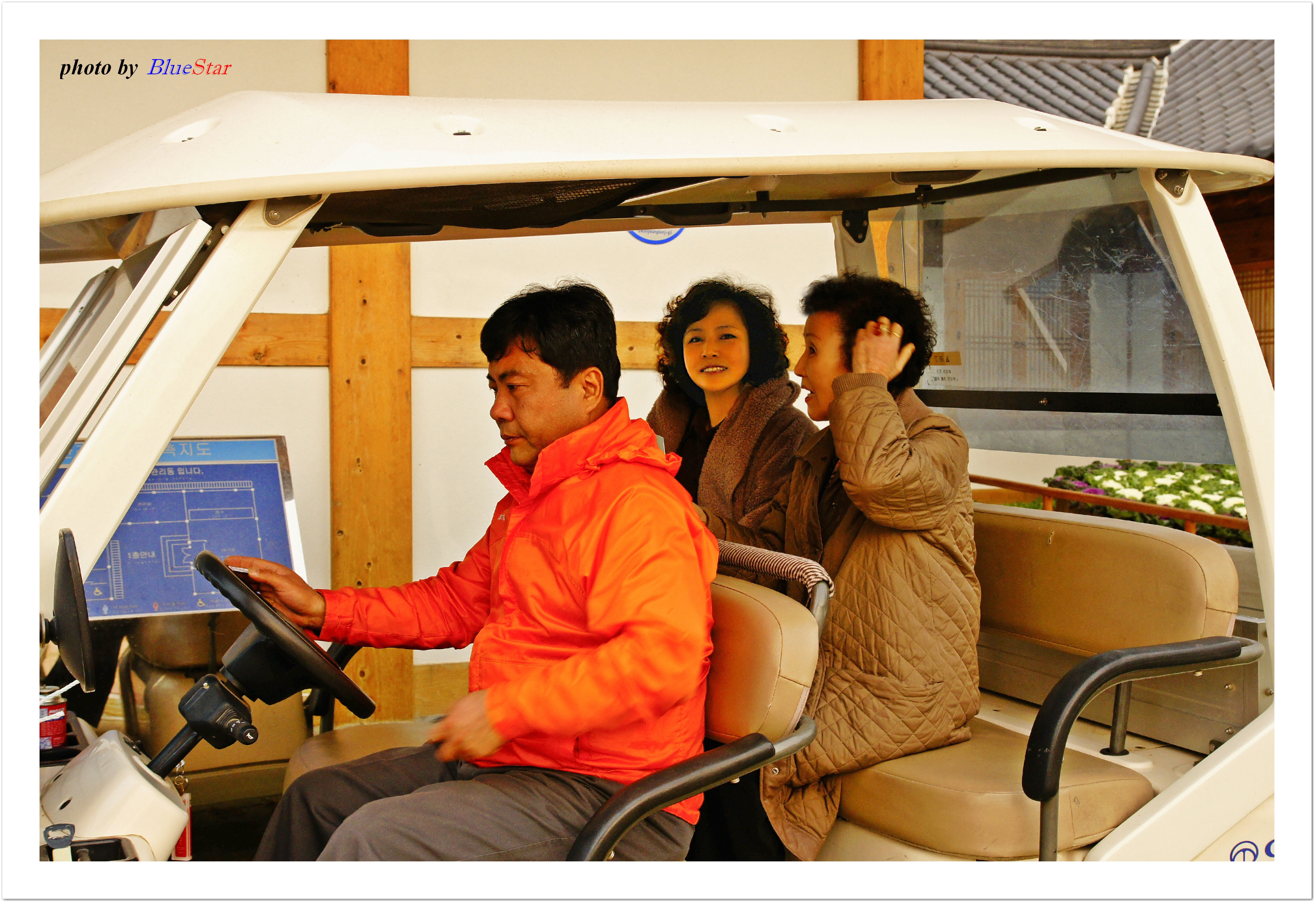 내부 구경을 원하는 여인네들의 요청에 관리사무소에서는 골프카로 안내해 준다.