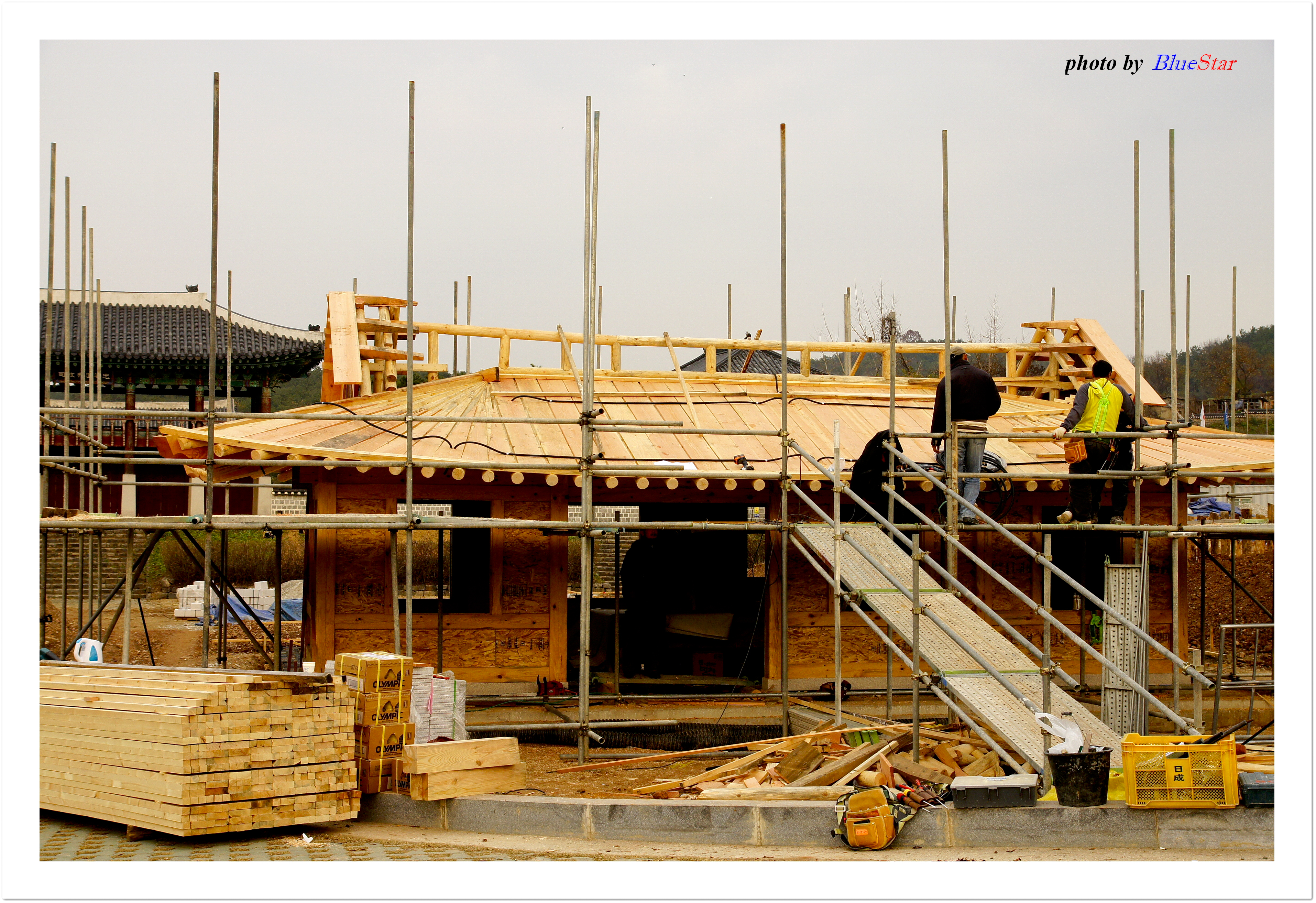 한창 신축중인 한옥. 이미 지어진 대규모한옥이 아닌 단독형이다.