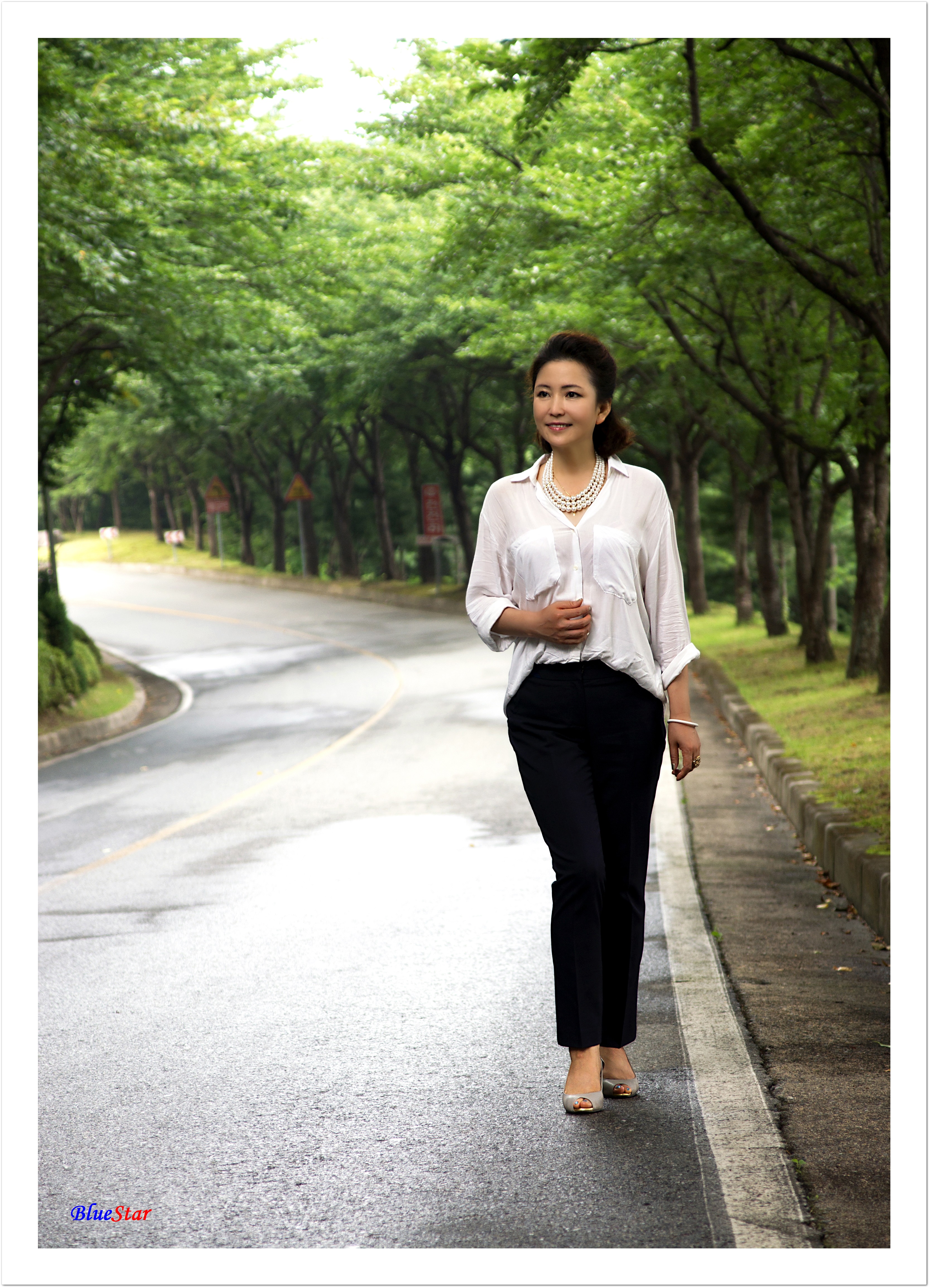 지나는 차량도 사진 속 모델이 되려는지 서행을 하고......