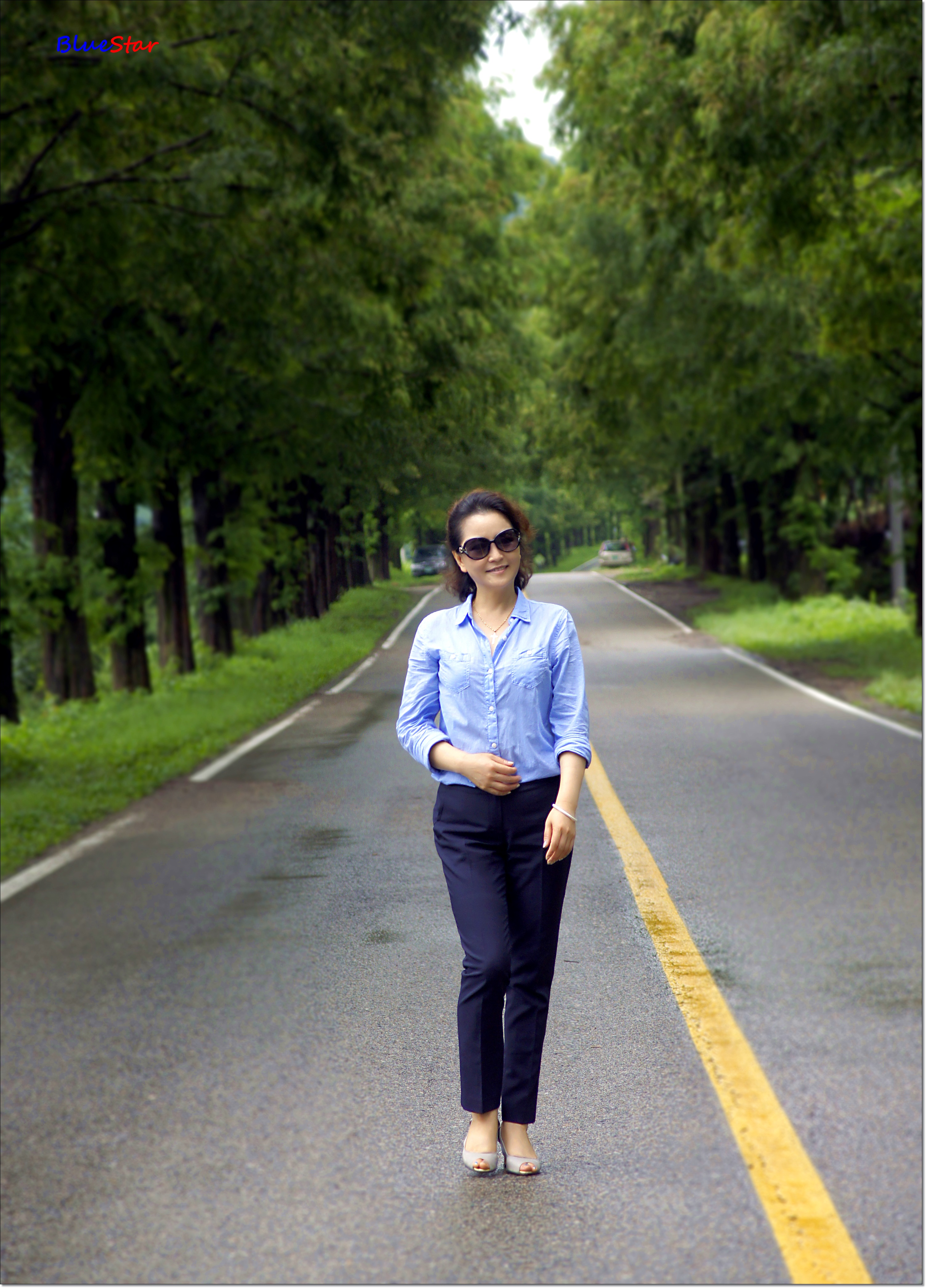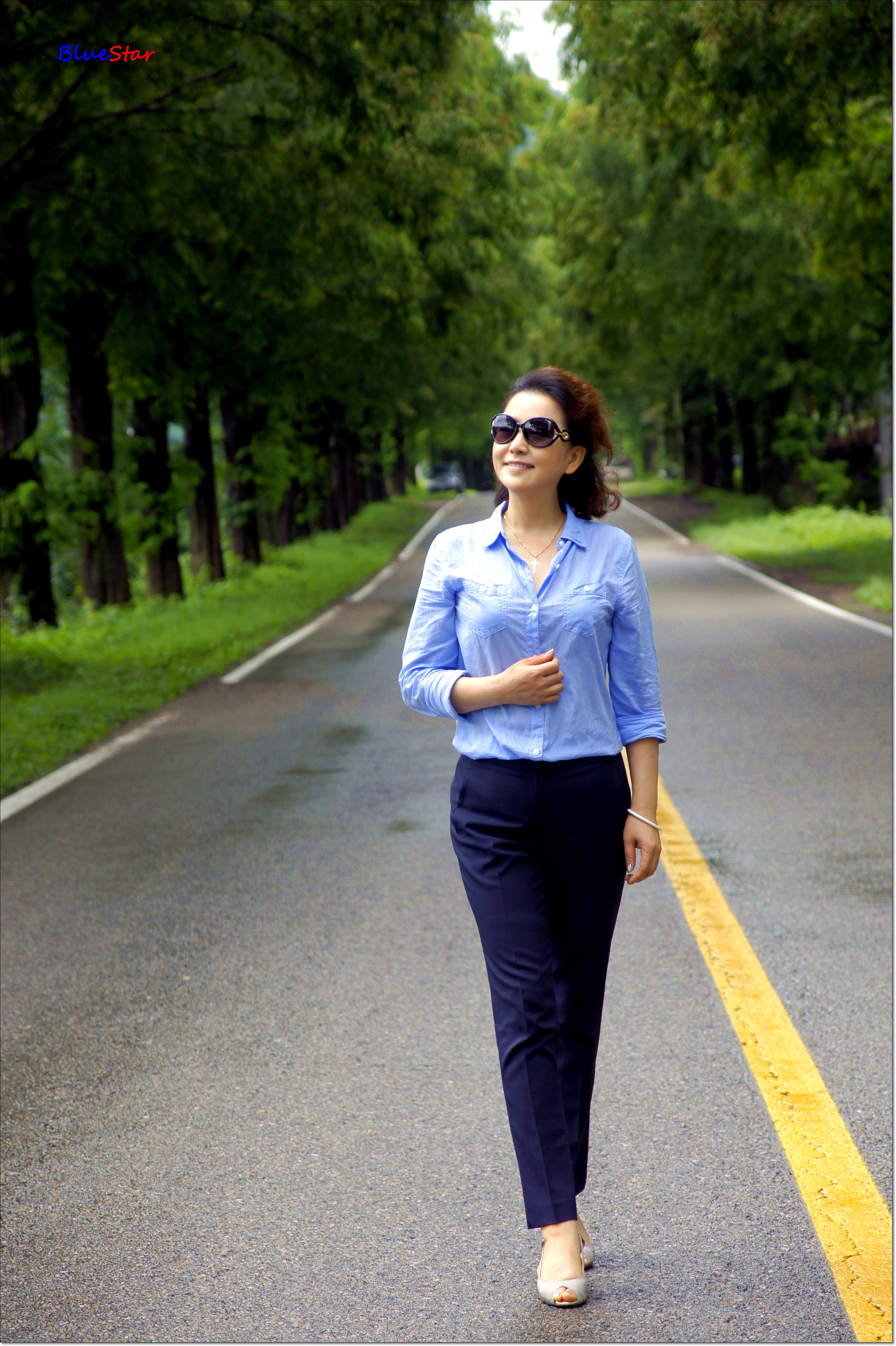 비온 후 물기가 촉촉하게 배인 길이 시원해서 더 좋다며 활짝 웃는 샤프란