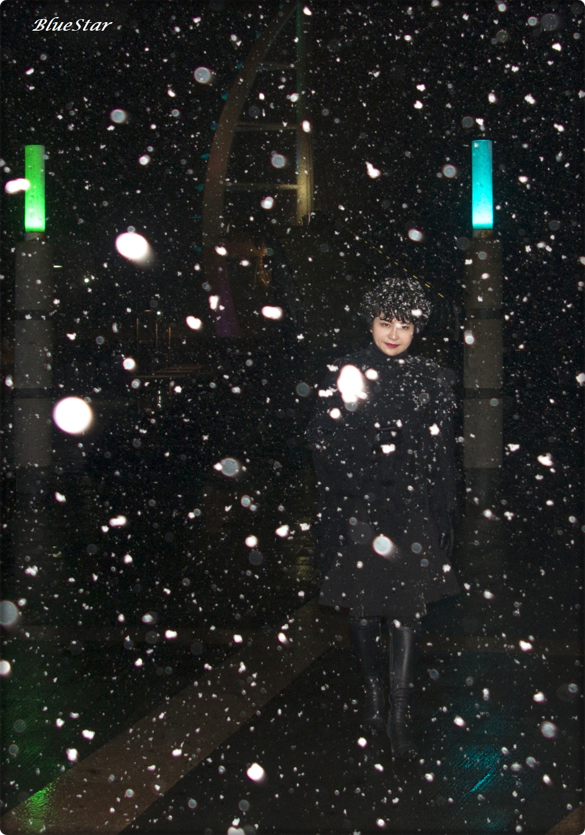 눈 내리는 새연교의 밤풍경