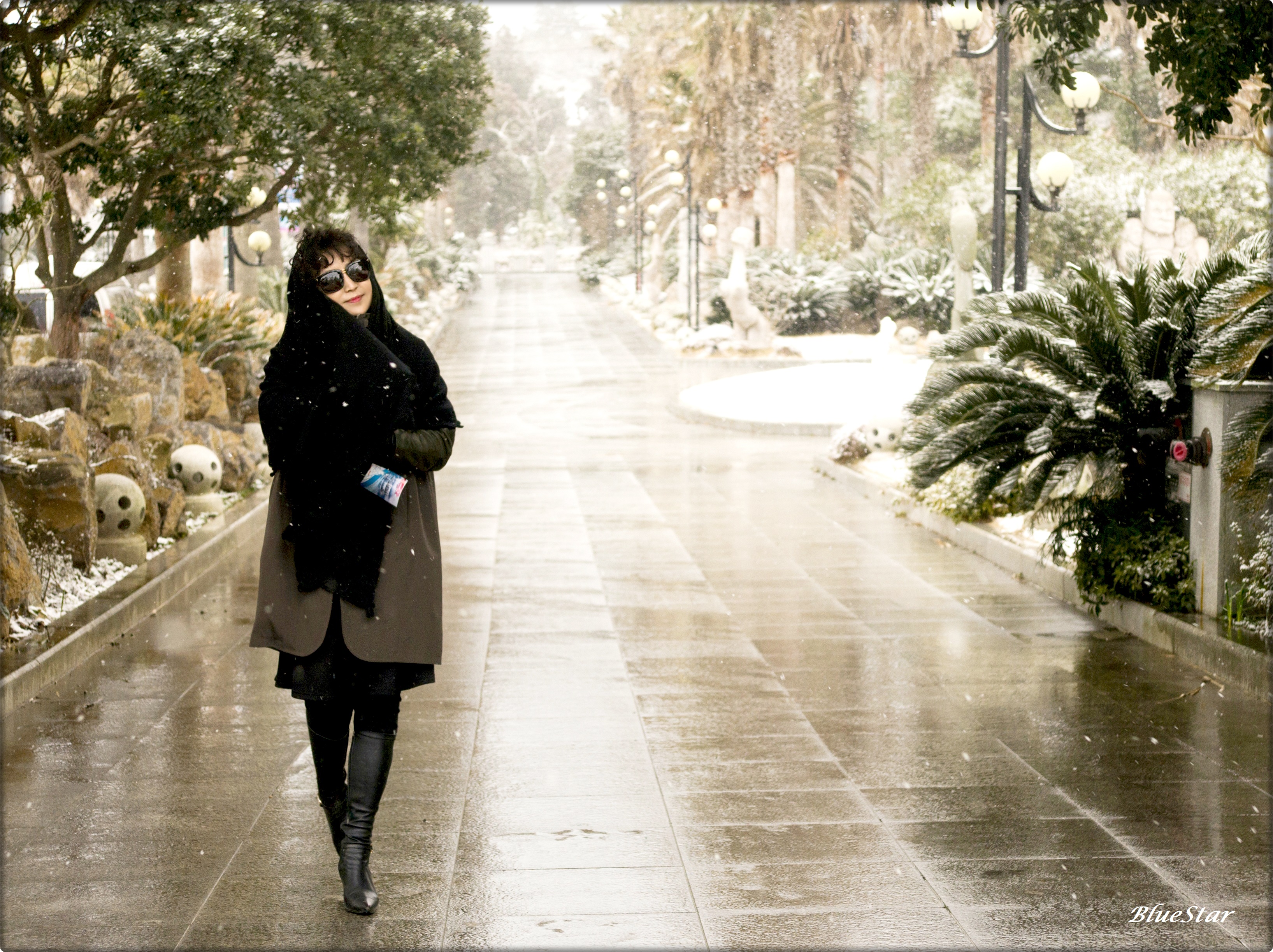 새연교 앞. 옷이 젖을만큼 그렇게 원없이 눈을 맞고...