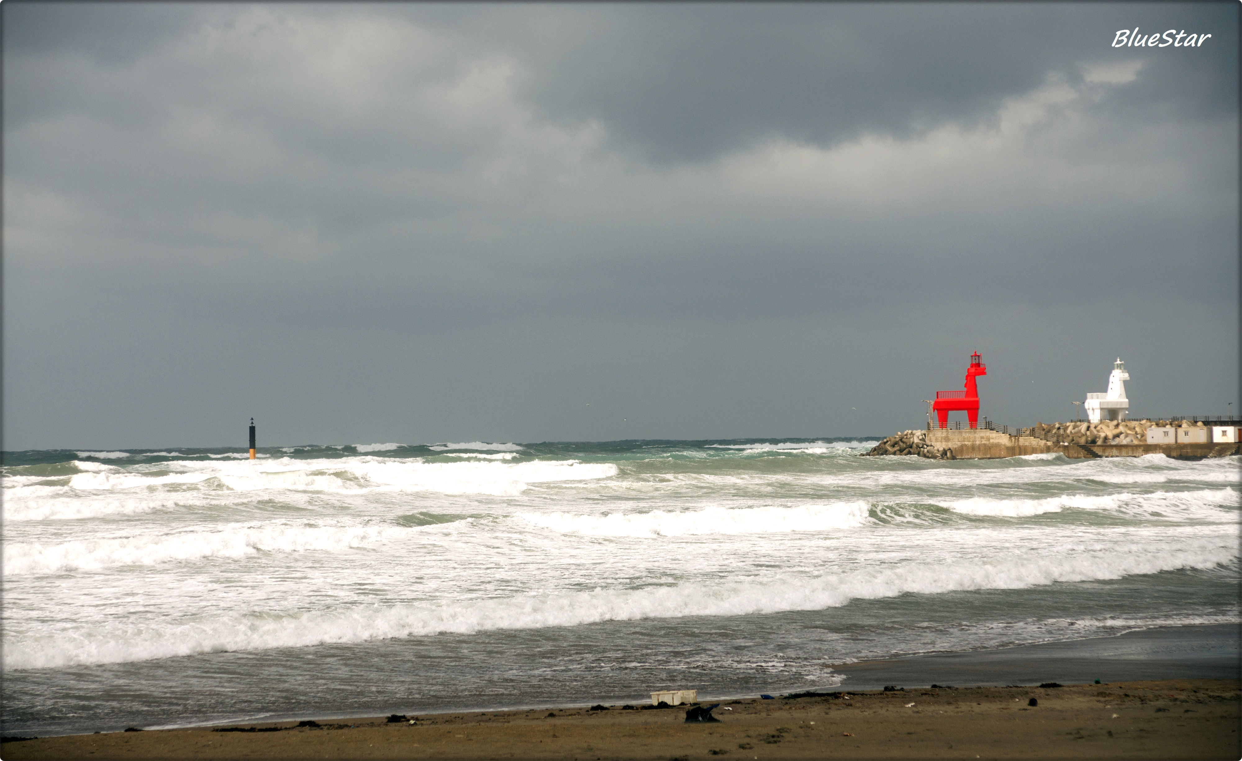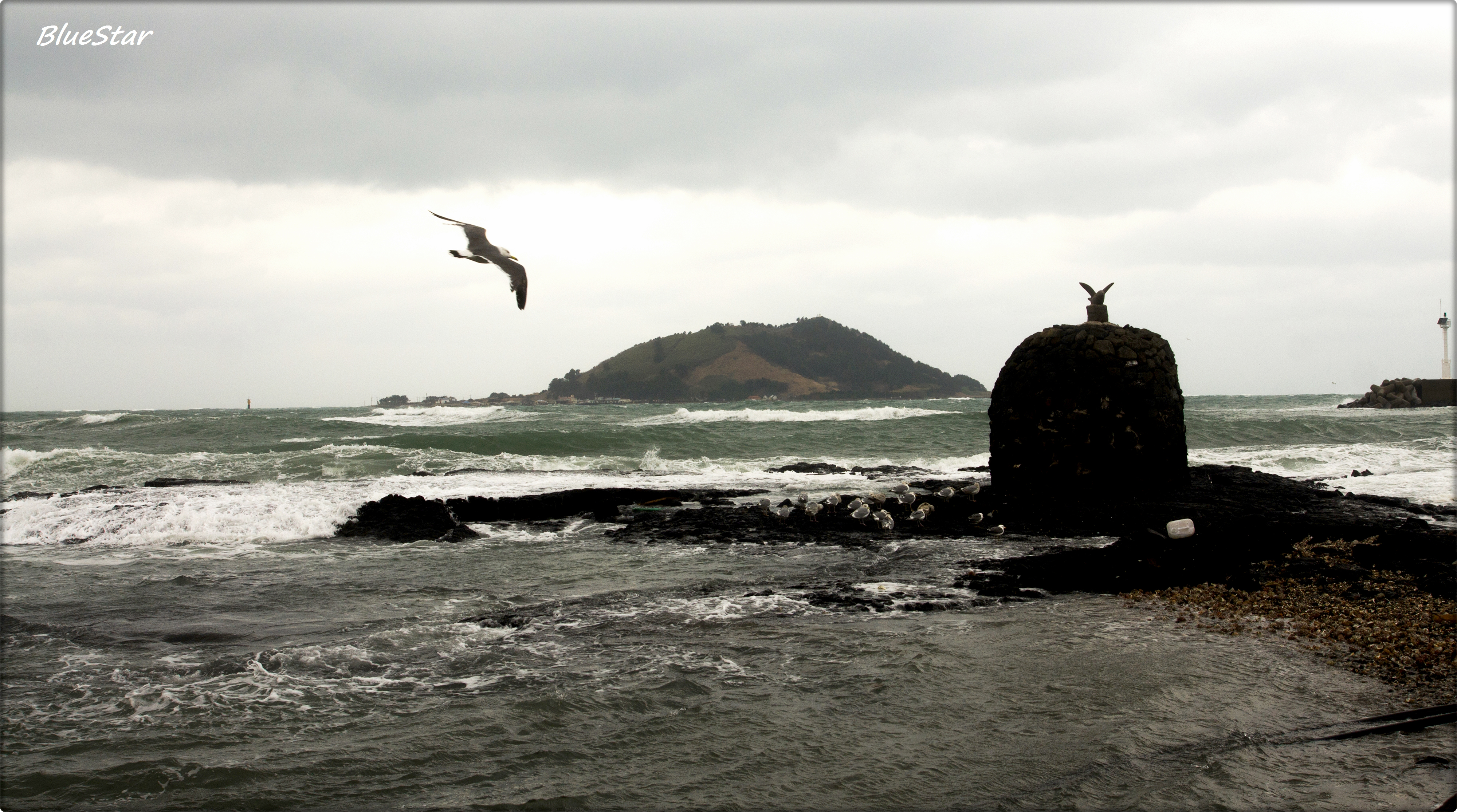 비양도가 보이는 협재해변. 짙게 내려앉은 먹구름과 거센 파도를 보라! 북아일랜드의 거친 바다풍경이 연상되지 않는가!